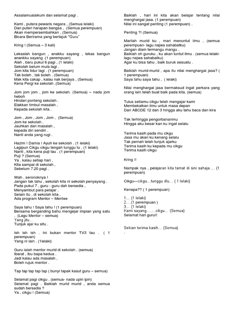 Teks Bicara Berirama Sempena Hari Guru Pdf